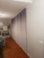Tende realizzate su misura confezionate tese con tessuto degradè lavabile e movimento scorrevole a pannello per donare a questo ambiente odierno un volto con uno stile che meglio lo rappresenta…..